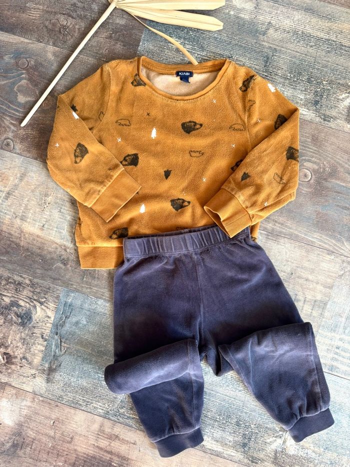 ✨KIABI ✨ —> Tres joli ensemble pyjama 2 pièces Taille 3ans - 90/97cm > Motif ours - arbre - forêt Couleur moutarde et gris foncé Tout doux 🥰 Maison non fumeur- envoi rapide et soigné