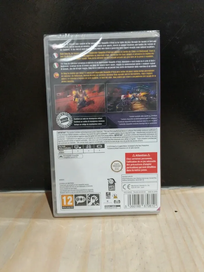 Jeu Nintendo Switch neuf, encore sous blister, jamais ouvert. État impeccable, parfait pour collectionneur ou pour offrir. ✔️ Jeu authentique ✔️ Envoi rapide et protégé ✔️ Vendeur Pro (Mangames) Beat’em up déjanté mettant en scène Shaquille O’Neal dans une aventure pleine d’humour et d’action. 💶 Prix : 30 €