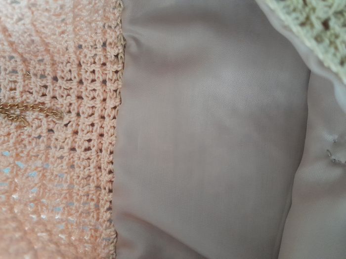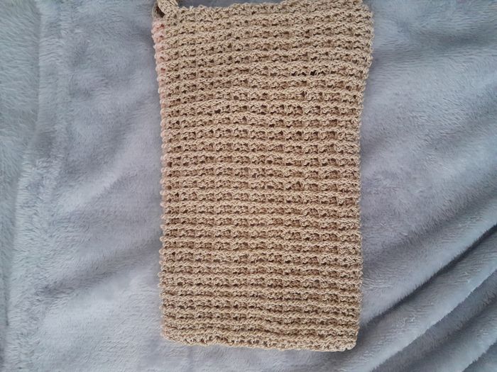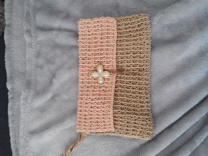 Pochette, à rabat, petite anse, doublure en satin, attache bouton pression Longueur : 22cm Hauteur : 13cm Matière : 100 % Coton Marque : Fait main au crochet