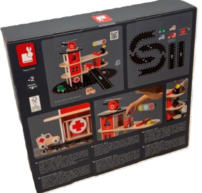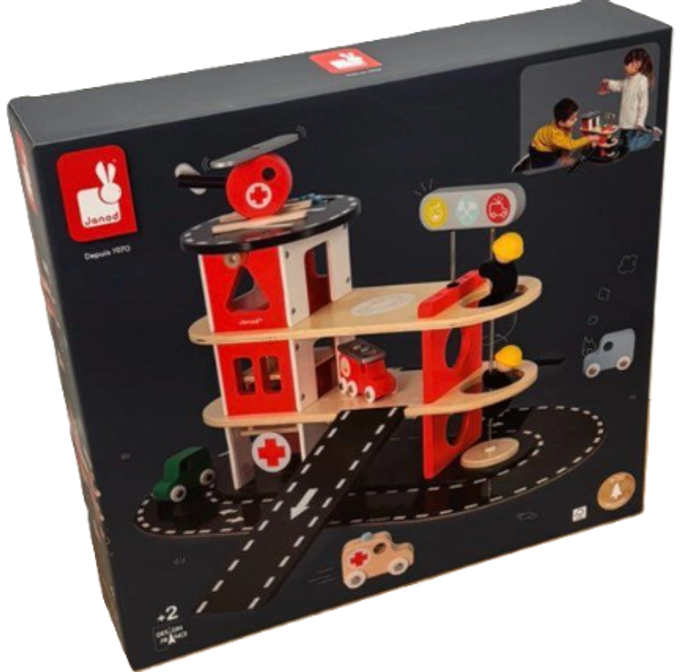Description Au feu les pompiers ! L'alarme retentit, il est grand temps de sauter dans son plus beau camion et de filer sans peur vers l'incendie à éteindre ! Pour des heures de jeu et d'histoire de pompiers, rien de mieux qu'une belle caserne en bois de 2 étages, bien équipée et au look tout en rondeurs ! Vous retrouverez dans ce magnifique jouet de la gamme Bolid, tout le nécessaire pour satisfaire les petits fans des soldats du feu ! A partir de 2 ans, les enfants pourront s'imaginer les plus belles aventures en faisant vivre les véhicules inclus : 2 voitures, 1 ambulance, 1 camion de pompiers et 1 hélicoptère pour pouvoir jouer jusque dans les airs ! Un ascenseur mécanique permet de faire monter les voitures jusqu'au dernier étage ! On retrouve 2 personnages pompiers sur la rampe (non amovibles), ils se déplacent sur celle-ci et sont toujours prêt à partir à l'action ! On adore les couleurs en harmonie de ce beau jouet qui développe l'imagination et fait travailler la motricité des plus petits. Sur certains éléments, on voit apparaitre la couleur du bois, pour encore plus d'authenticité. Dimension de la caserne de pompiers : 42 x 68,5 x 32 cm. Ce produit est composé de matériaux certifiés FSC® et de matériaux contrôlés. ⛟ Bolid est une collection Janod imaginée pour les tout-petits dès 2 ans. L'ensemble des produits de cette gamme est réalisé dans des matériaux nobles pour vous offrir des jouets solides !Dimensions 42 x 68 x 32 cm prix de vente fabriquand 64.99€