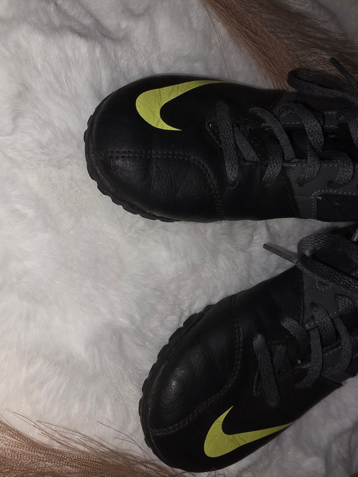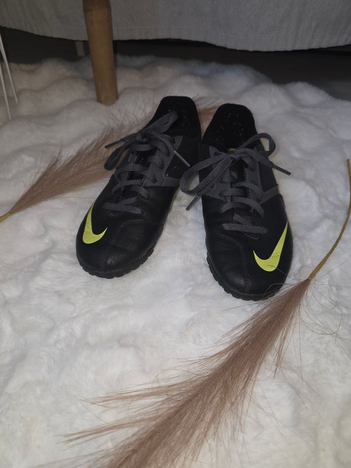 🖤 Baskets de foot Nike enfant 👟 Chaussures Nike 🎨 Coloris noir avec swoosh vert fluo ⚽ Modèle football / futsal / sport 👣 Semelle crantée antidérapante 👌 Légères et confortables 📏 Pointure : 32 📌 État : tres bon état ✨ Parfaites pour le sport, le foot ou l’école 🛍️ Regarde mon dressing pour réduire les frais 😊