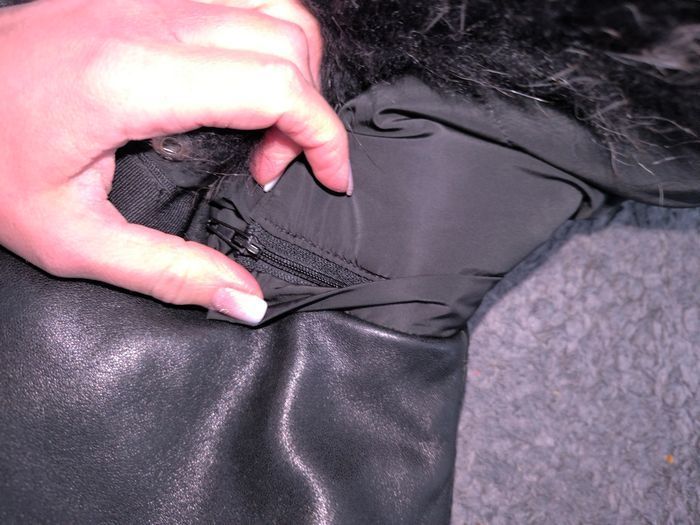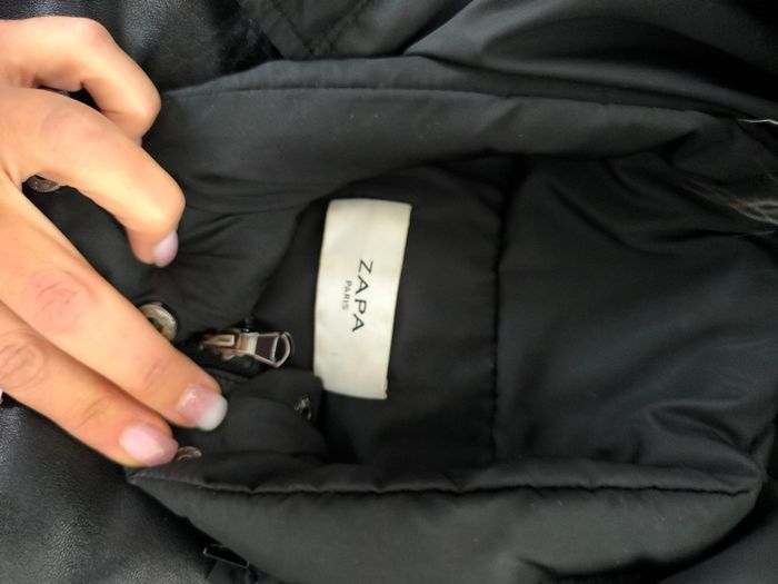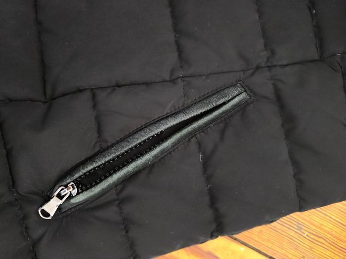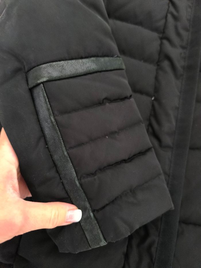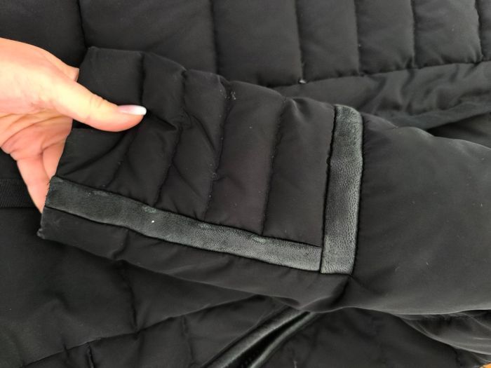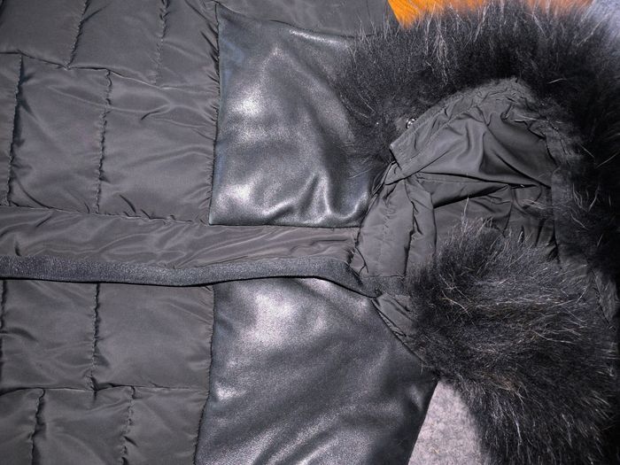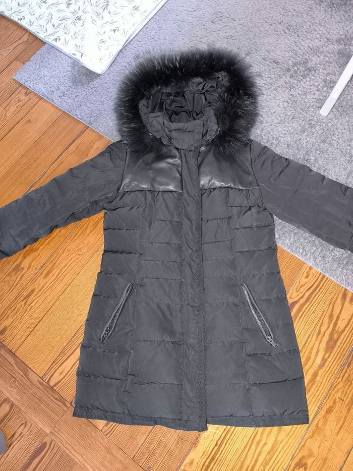 Doudoune duvet et plumes Détail cuir Fourrure autour de la capuche La capuche est amovible (zip) Et le tour en fourrure également (boutons pressions) Les détails cuir des manches et des poches sont un peu patinés mais le reste est en très bon état Taille 36