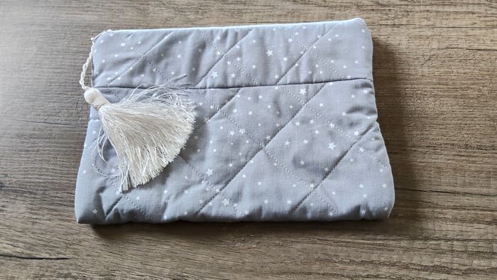 Ensemble composé : - d'une trousse de toilette, doublée éponge à l'intérieur, 24cm x 18 cm environ - d'un "tapis" à langer, doublé éponge et pliable via un élastique, 55cm x 47 cm environ - d'une couverture, doublée laine pour bébé, 74 X 72 cm environ - d'un sac à langer, hauteur : 30 cm environ, longueur : 43 cm environ. Seul le sac a été utilisé quelques fois, le reste a juste été lavé. Le tout est en parfaite état, et a été fait main. #thethe27bebe1mois #thethe27bebe3mois #thethe27bebe6mois #thethe27bebeaccessoire