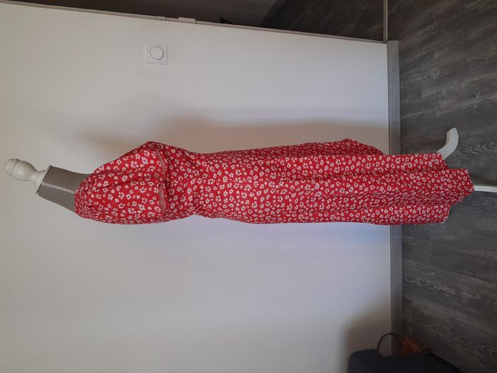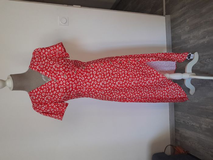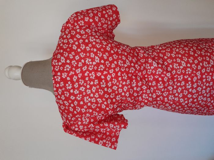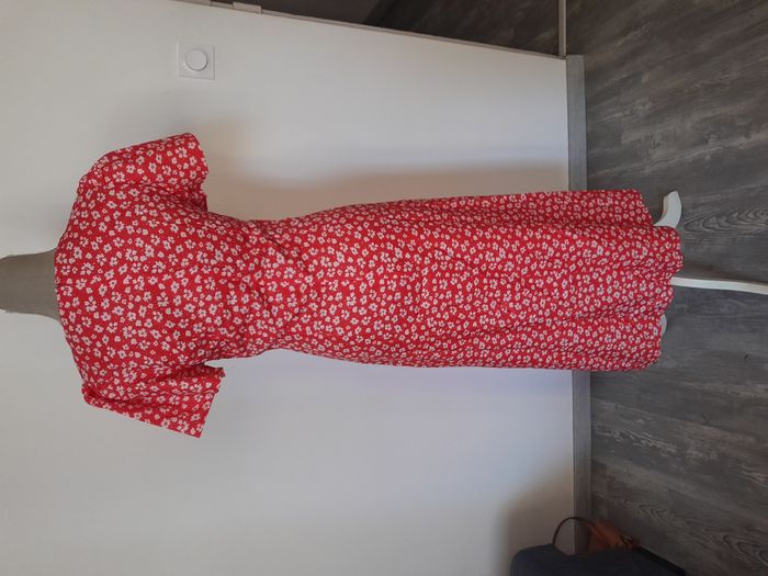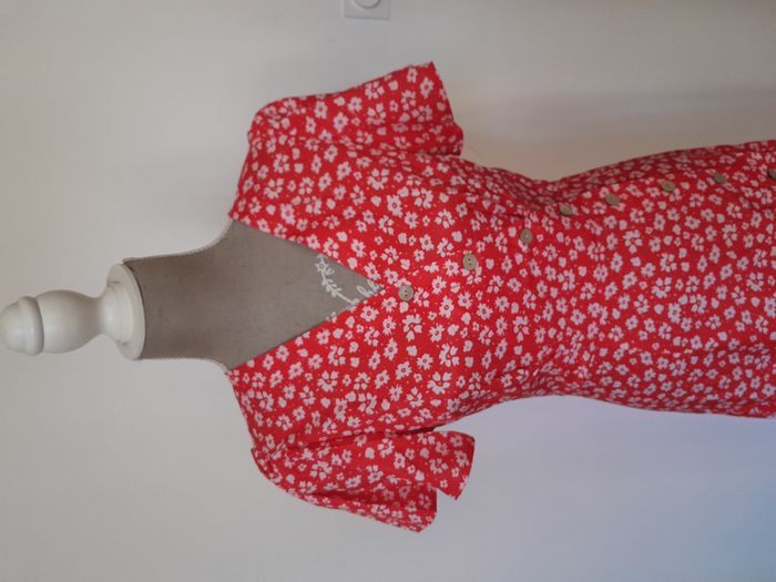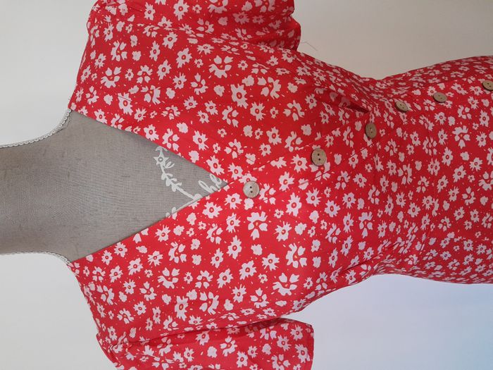 Robe, manche courte bouffante, imprimé, avec bouton en déco devant, attache fermeture éclair au dos Longueur : 124cm, Fermeture éclair : 55cm Aiss / Aiss : 43cm Matière : Polyester Marque : Rétro Stage