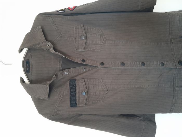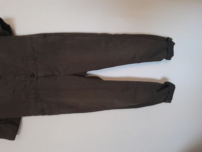 Combinaison en jean, à fine rayure, manche longue ou 3/4, écusson en déco, 7 poche, attache bouton pression devant Longueur : 140cm Aiss / Aiss : 48cm Matière : 62 % Coton, 36 % Polyester, 2 % Elasthanne Marque : On You