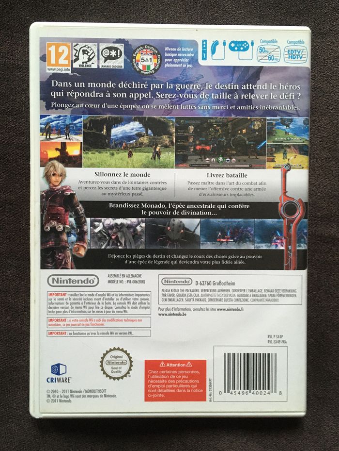 Jeu Xenoblade Chronicles sur Wii avec Boite + sans notice. CD en très bon état. Quelques traces d'usage sur la boite. Le jeu fonctionne parfaitement. D'autres jeux-vidéos a vendre dans mon dressing. xenoblade nintendo wii