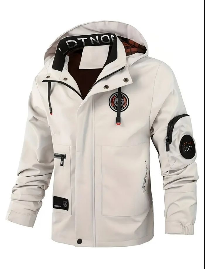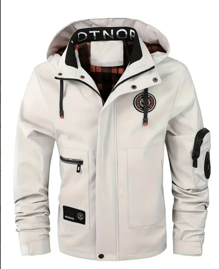 Veste décontractée pour homme à multiples poches, design à capuche et cordon ajustable pour le printemps et l'automne, vêtement d'extérieur tendance