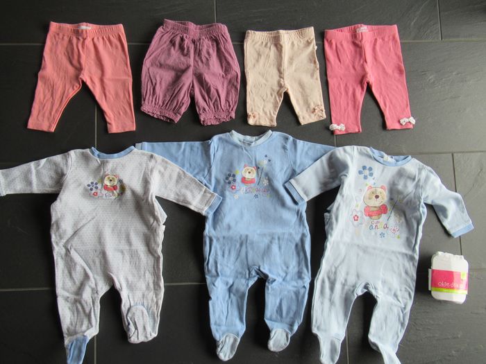 Lot de 18 vêtements fille printemps / été 6 mois (ensemble, barboteuse, short, bodies, pyjamas)