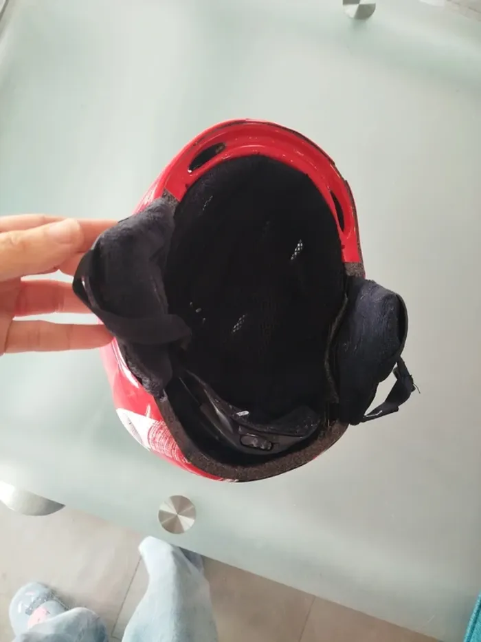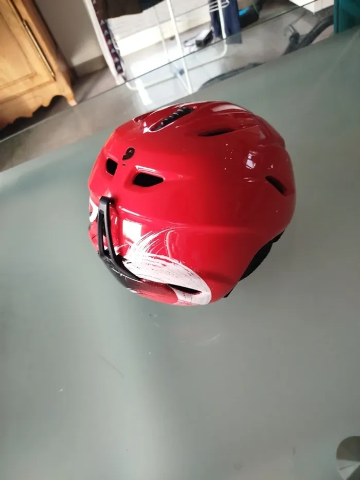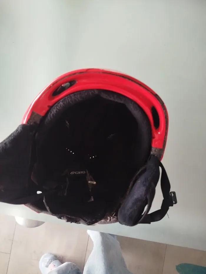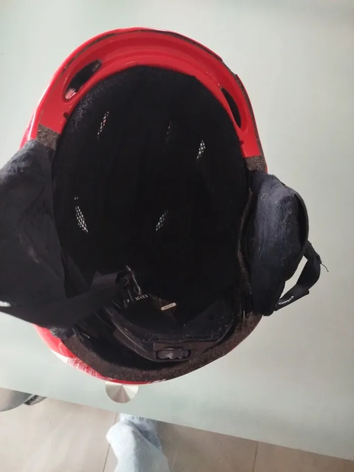 Casque pour tour de tête 55-59cm avec molette de réglage, coussinets au niveau des oreilles amovibles. Tissus intérieurs en très bon état Il est un peu abîmé sur l'avant, plastique un peu craqué ( voir photos)