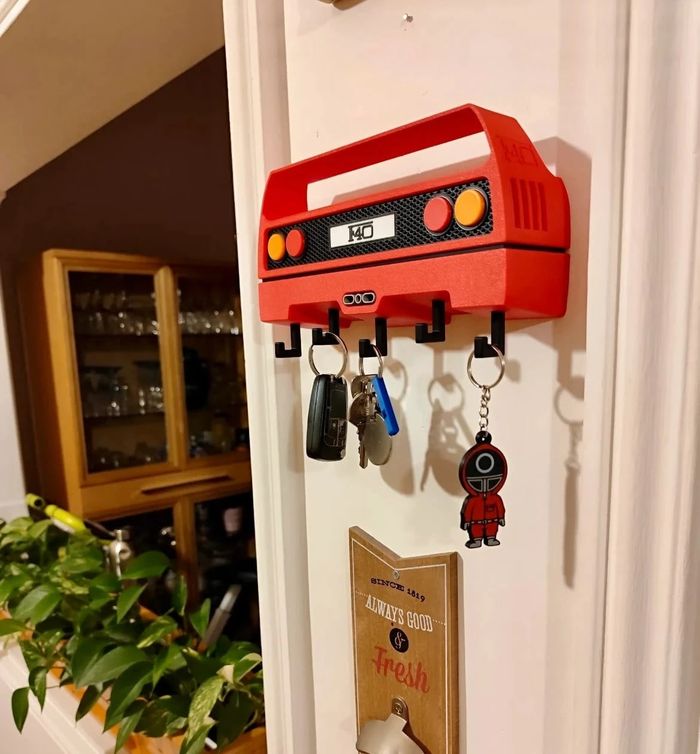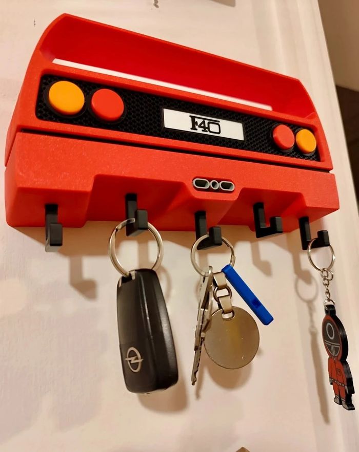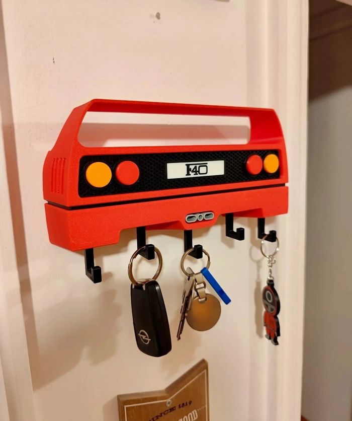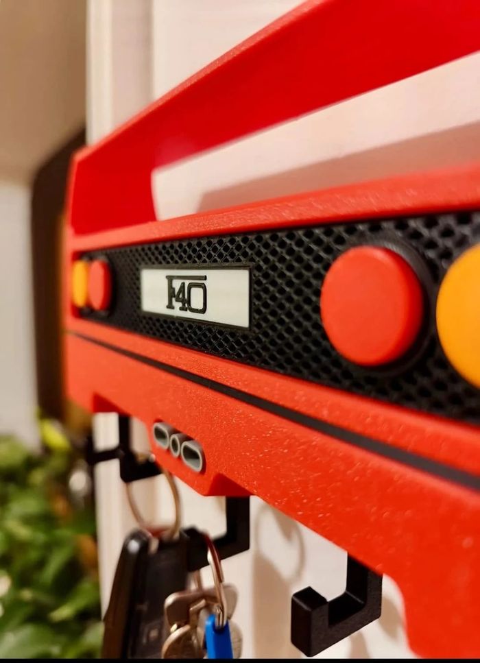 Porte-clés mural design Ferrari F40 – Style unique et déco Ajoutez une touche rétro et sportive à votre intérieur avec ce porte-clés mural inspiré de l’arrière emblématique de la Ferrari F40 ! Ce support original et robuste permet d’organiser vos clés tout en apportant une vraie personnalité à votre mur. 🔴 Design fidèle à la mythique F40 🔑 5 crochets solides pour vos clés ou porte-clés 🧲 Fixation murale facile (adhésif ou vis, non inclus) 📏 Dimensions : environ 20 x 10 cm Finition soignée – Idéal pour les fans d’automobile ou comme idée cadeau originale !