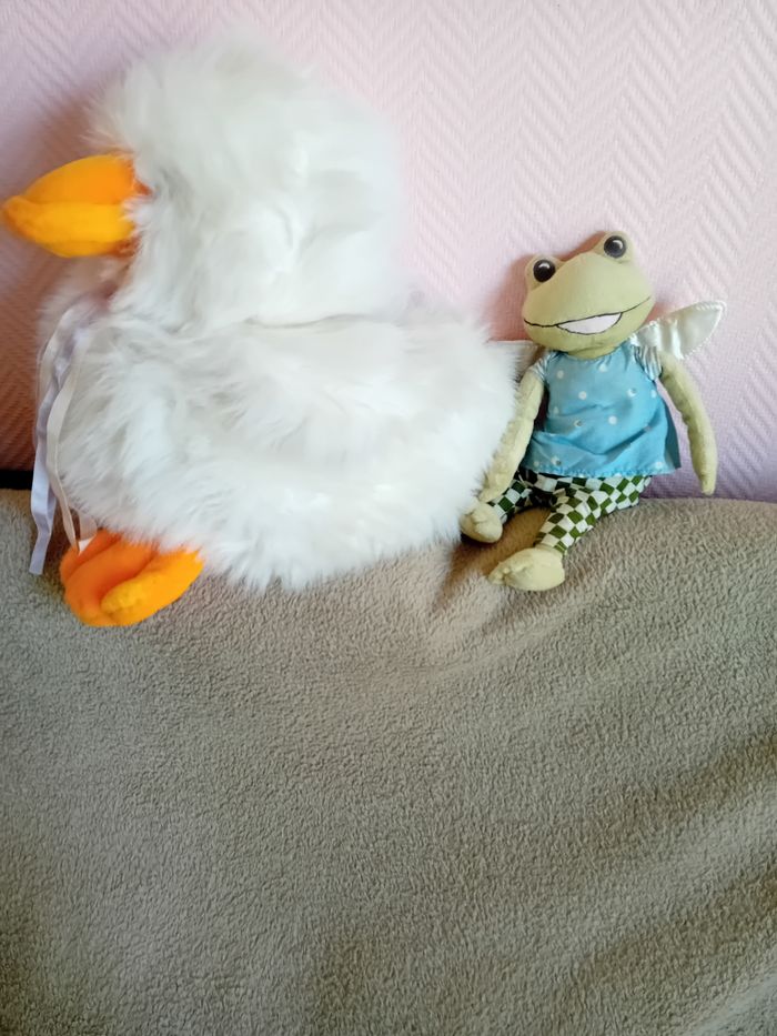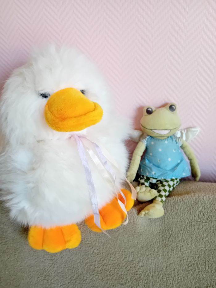 Gros canard fausse fourrure tout doux avec petite grenouille fée Tout en très bon état