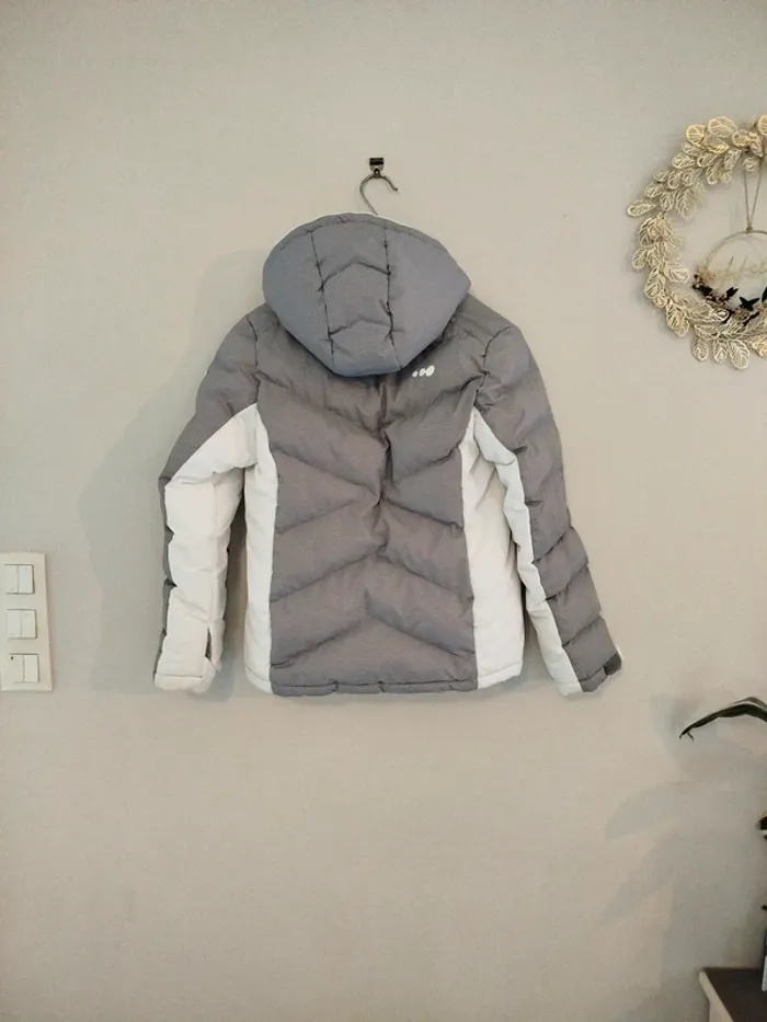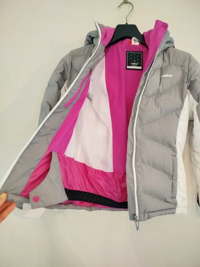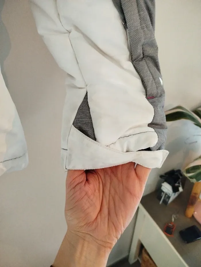 Veste de ski en bon état sauf le bas des manches qui sont un peu tachées, pas d'autres défauts.