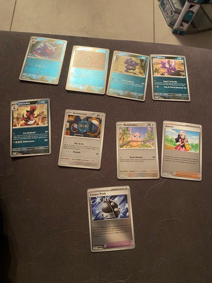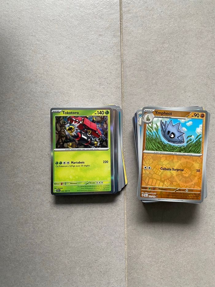 Bonjour Vends lot de 300 cartes Pokémon officielles issues de différentes séries. Lot composé de 200 cartes communes et de 100 cartes reverses holographiques. Idéal pour offrir une collection à un enfant. Tags : Matuvu57 lot cartes Pokemon lot 100 cartes lot 200 cartes lot 300 cartes Pokémon lot cartes reverses lot reverse lot holo lot holographique lot cartes holo cadeaux enfants Kanto (Gen 1) • Pikachu • Dracaufeu • Bulbizarre • Salamèche • Carapuce • Mewtwo • Mew • Ectoplasma • Rondoudou • Psykokwak • Leviator • Noadkoko • Arcanin • Lokhlass • Ronflex Johto (Gen 2) • Togepi • Mentali • Noctali • Lugia • Ho-Oh • Celebi • Scarhino • Tyranocif Hoenn (Gen 3) • Rayquaza • Groudon • Kyogre • Braségali • Gardevoir • Métalosse Sinnoh (Gen 4) • Lucario • Dialga • Palkia • Giratina • Darkrai • Garchomp Unys → Paldea (sélection moderne) • Zoroark • Greninja • Mimigal • Mimiqui • Évoli • Sylveon • Dracaufeu