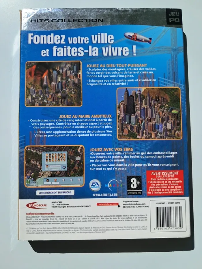 Jeu PC SimCity 4 complet. C'est le jeu officiel et d'origine de l'époque, édition Hits Collection. 🏬 Genre : Jeu de gestion ✅ En bon état. 🇫🇷 Version française. Le jeu contient : 🔹 le fourreau 🔹 la boite extérieure 🔹 le prospectus Assistance Technique / Service Client 🔹 les 2 disques : le premier est nickel, le second en revanche a quelques rayures au dos. Le code nécessaire pendant l'installation du jeu est écrit sur le devant du second disque (caché volontairement sur ma photo) 🔹 Développé par Maxis (le studio à l'origine des Sims et de Spore) 🔹 Edité par Electronic Arts Mon avis : ce jeu est le quatrième de la série SimCity et aussi clairement l'un des mieux notés de la licence par la presse ! Noté 18 sur 20 par le site JeuxVideoCom et 8 sur 10 par le site Gamekult !