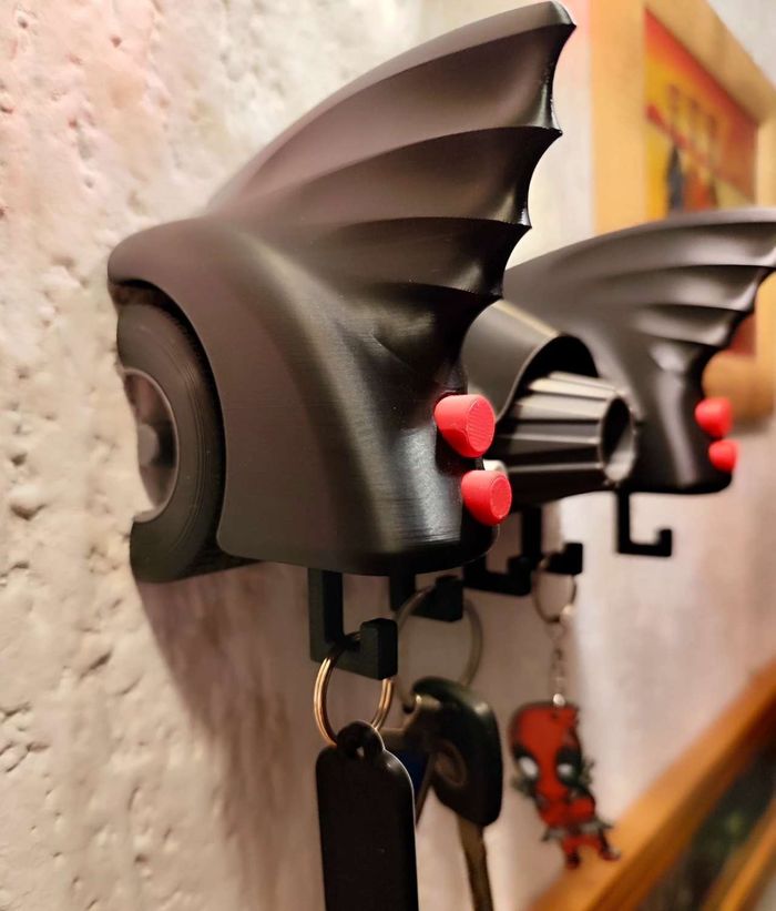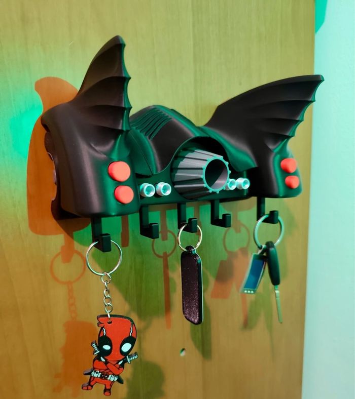 Porte-clés mural Batmobile Apportez une touche sombre et légendaire à votre intérieur avec ce porte-clés mural inspiré de l’iconique Batmobile de l’univers Batman. Un clin d’œil geek et puissant qui séduira les fans de super-héros et de design automobile mythique. 🦇 Design inspiré de la Batmobile, avec ses lignes agressives et reconnaissables 🔑 Équipé de 5 crochets robustes pour clés, badges ou accessoires 🧲 Facile à fixer au mur (adhésif ou vis, non fournis) 📏 Dimensions : environ 21 × 13 cm