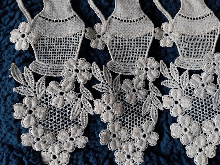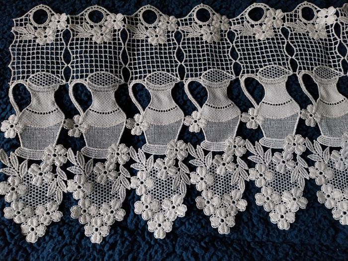 Grande longueur : 3m06 ( peut être coupé) Hauteur : 30 cm Motif: cruche et fleurs En coton Couleur beige