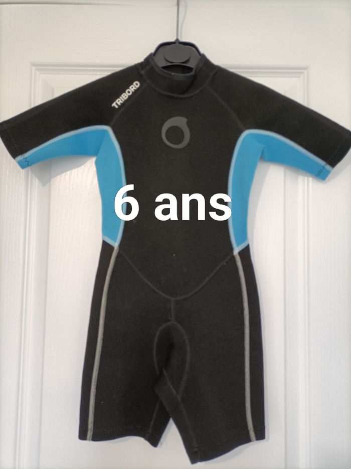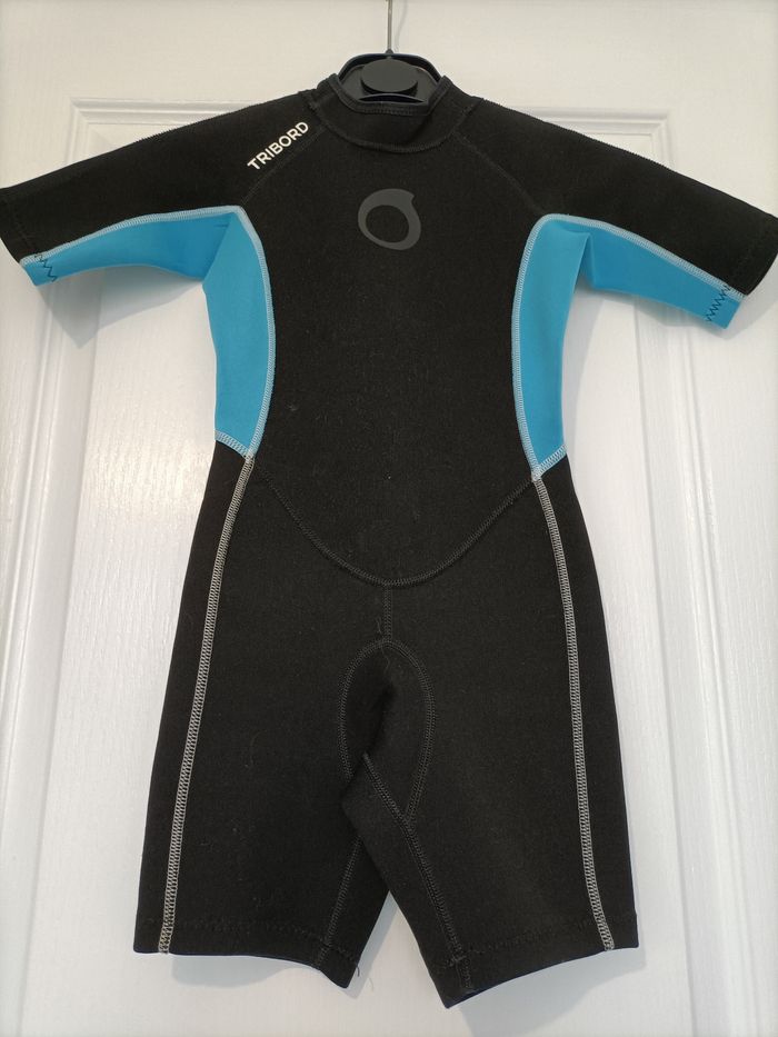 Combinaison aquatique shorty noir et bleu Tribord 6 ans - photo numéro 1