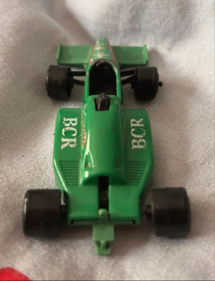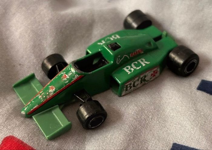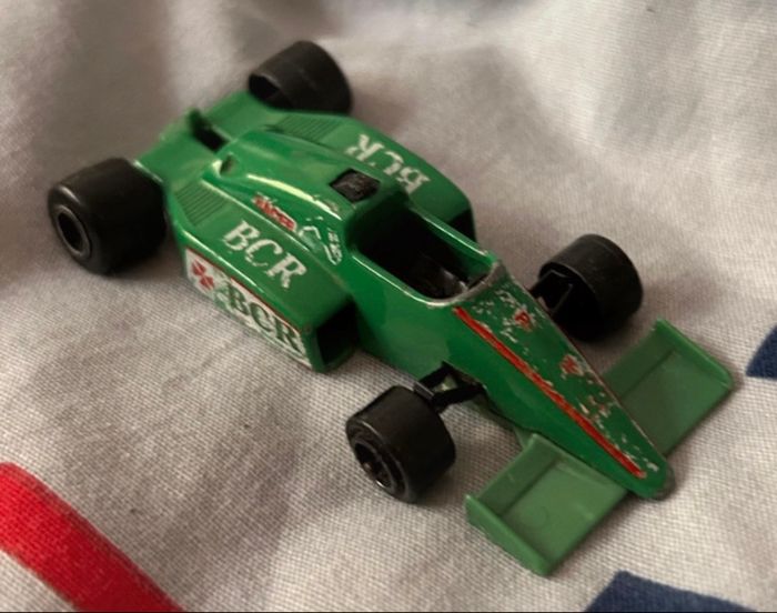 Je vends une voiture F1: - N'282 - Dimensions: Hauteur 02 cm, Largeur 04 cm, Longueur 08 cm Matière: Métal A l'échelle 1/55 Marque: « Majorette » Couleurs: Vert, Blanc, Rouge & Noir 1€