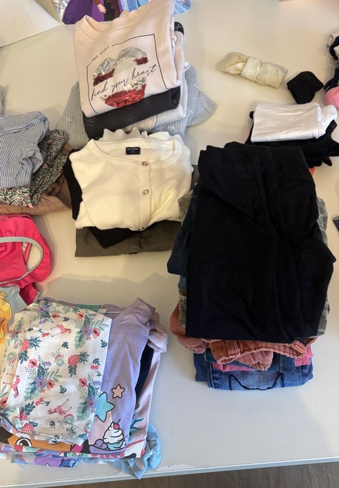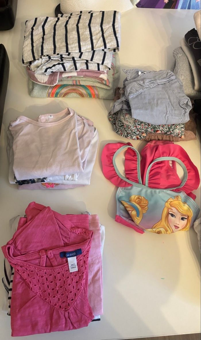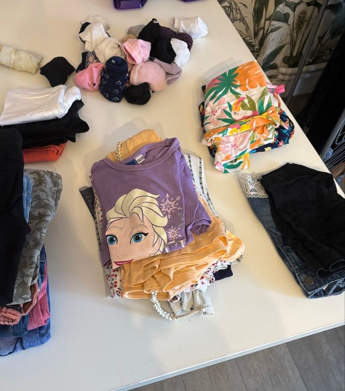À vendre vêtements fille 4 ans marques différentes -20 paires de chaussettes (dont certaine jamais porter) -3 pyjamas -4 pyjamas short et t-shirt (été) -7 t-shirts manche longue -1 maillot de bain -2 shorts -2 combishort -5 robes -5 t-shirt manche courtes -4 pulls -4 petite vestes -4 leggings -8 pantalons -1 veste en jean