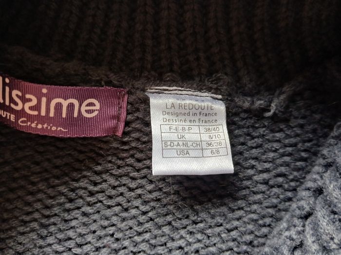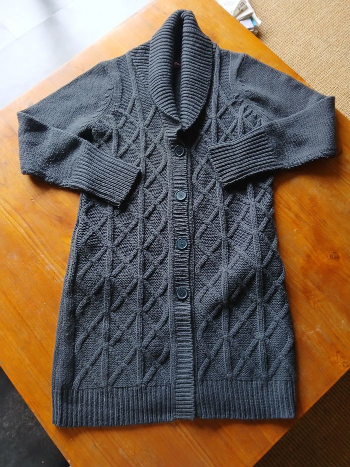 Gilet long gris foncé de la marque La Redoute, grosses mailles et grand col. Taille 38 / 40 Bon état