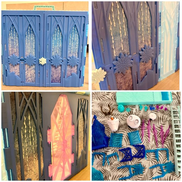 💙 Palais de glace – La Reine des Neiges ❄️☃️ Magnifique maison de poupée La Reine des Neiges, en très bon état ✨ Le palais est complet, propre et parfaitement fonctionnel. L’ensemble a été soigneusement nettoyé. 🔹 À noter : il manque 3 petits accessoires de la coiffeuse ainsi qu’1 verre (sans aucune incidence sur le jeu). Jouet très bien entretenu (voir photos). 🎁 Idéal pour faire plaisir à un fan d’Elsa et Anna ! 📦 Envoi rapide et soigné.