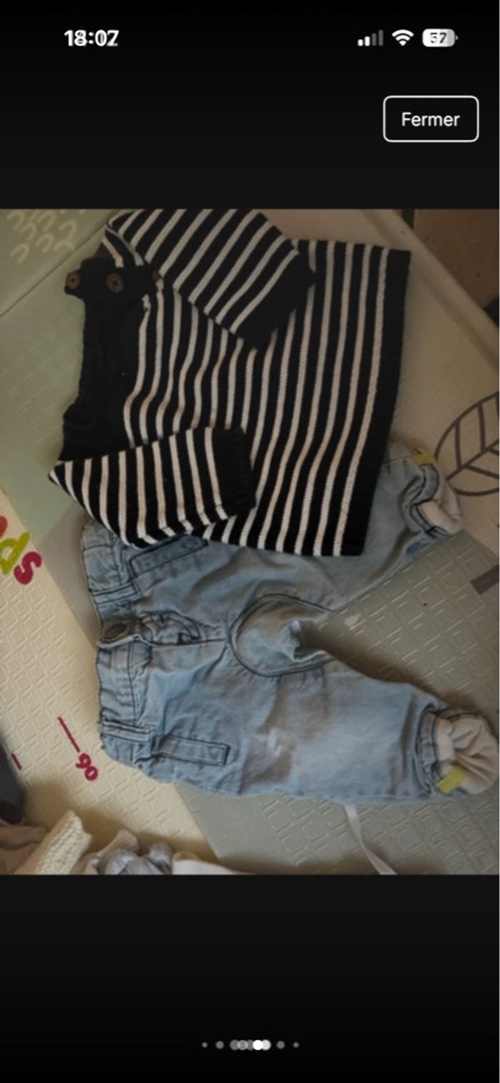 Vêtements non taché, non trouer et toutes les pressions fonctionne correctement. Tout les vêtements non pas forcément étais porté par mon enfant. Ce lots de vêtements est composé de différents marques.