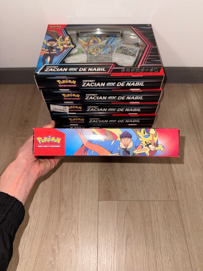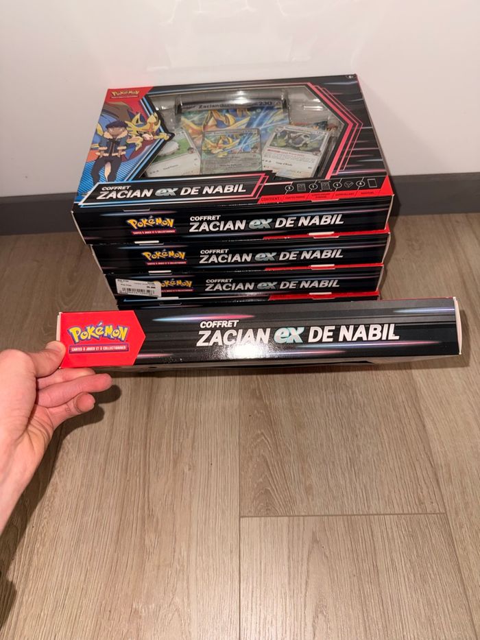 Coffret Pokémon Zacian ex Extension EV09 – Aventures Ensemble Produit neuf, scellé d’origine. Contenu du coffret : – Carte promo Zacian ex – Boosters de l’extension Aventures Ensemble – Cartes et accessoires inclus selon coffret officiel Idéal pour ouverture, collection ou investissement. 📦 J’en ai 6 en stock 📦 Envoi rapide et soigné 💬 Possibilité de lot avec d’autres articles Pokémon 💬 Ouvert aux offres sérieuses
