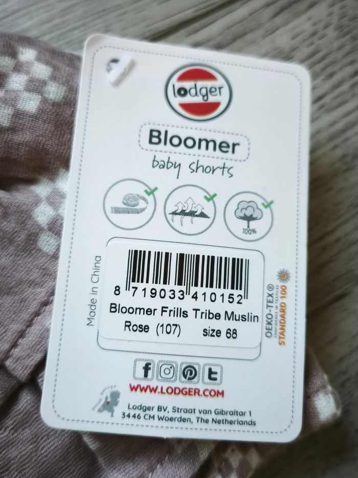 NEUF Bloomer pour bébé de la marque LODGER. Taille 68. Il possède des volants (frills) et un petit nœud décoratif à la taille. Il est certifié Oeko-Tex, ce qui garantit l'absence de substances nocives.