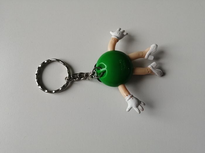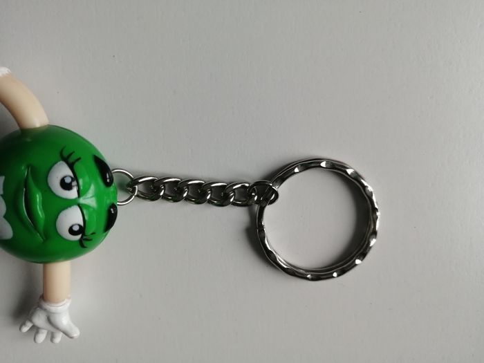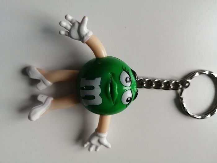 figurine publicitaire mascotte vert M&M's porte-clés 5 cm et 12 cm en comptant la chainette et l'attache