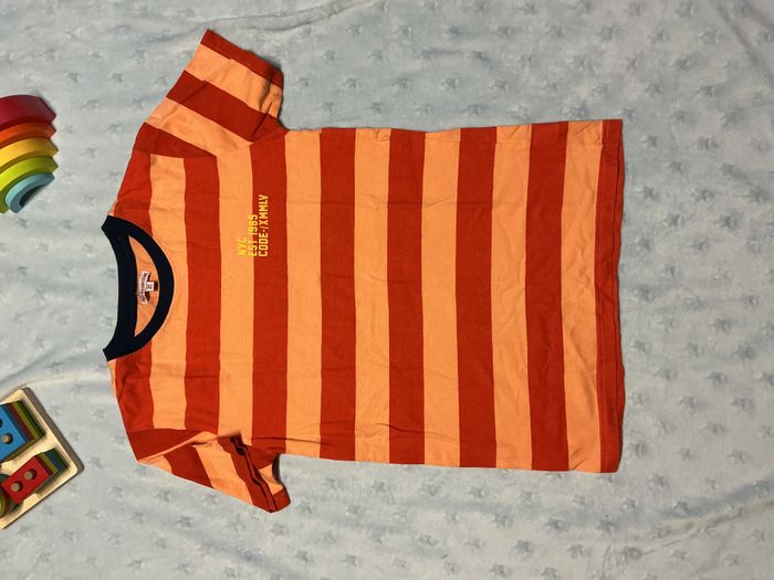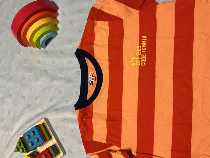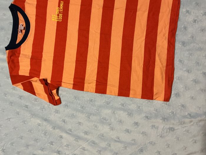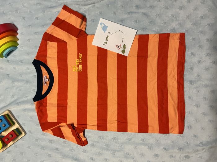 teeshirt manche courtes rayé orange et abricot 12 ans u essentiel inscription poitrine