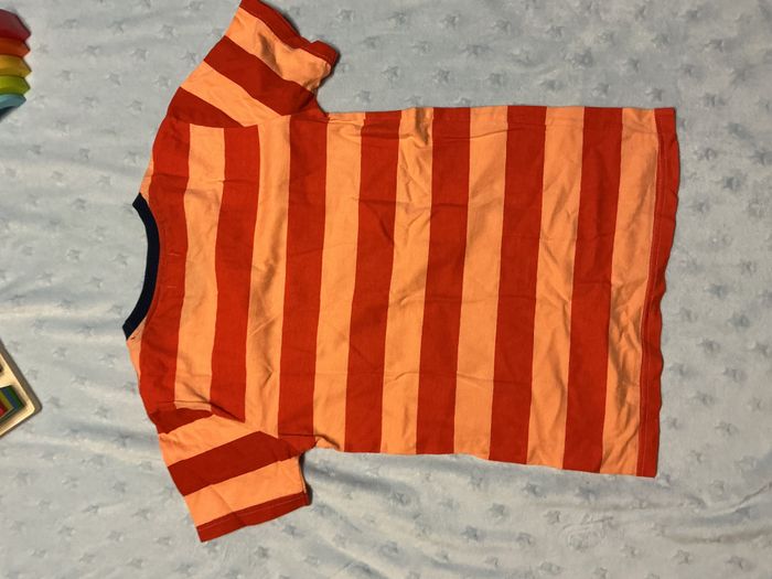 teeshirt manche courtes rayé orange et abricot 12 ans u essentiel inscription poitrine - photo numéro 7