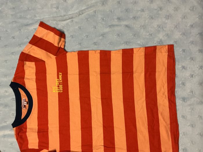 teeshirt manche courtes rayé orange et abricot 12 ans u essentiel inscription poitrine - photo numéro 6