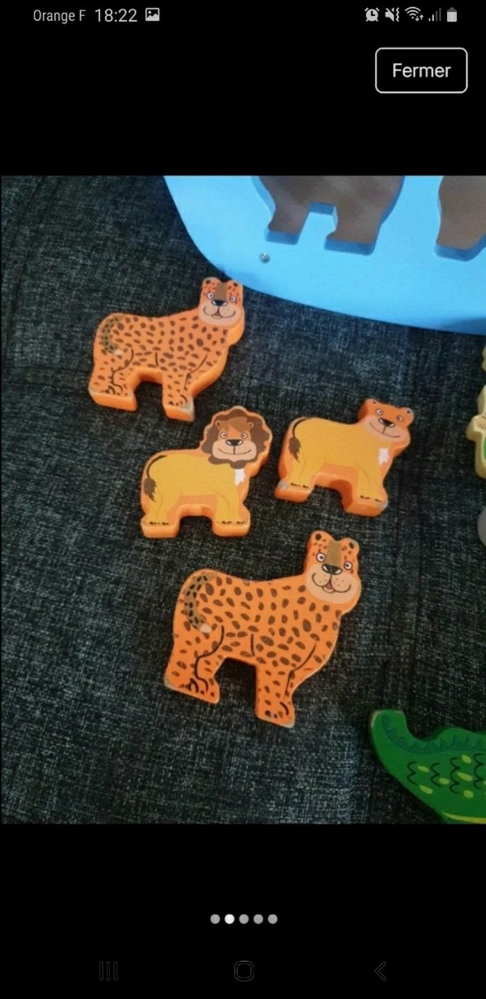 Jeu en bois avec figurines à mettre dans les formes Usures du bois naturel avec le frottement