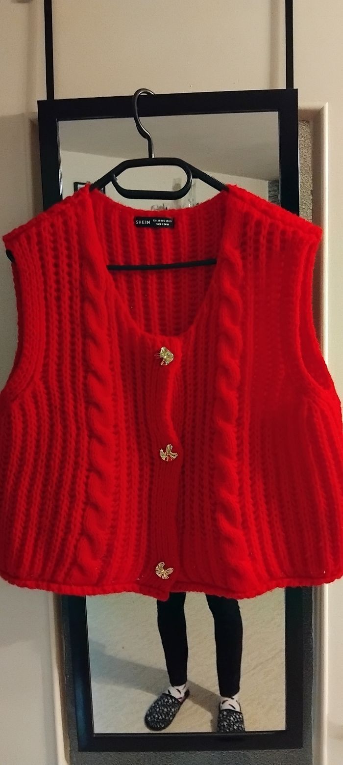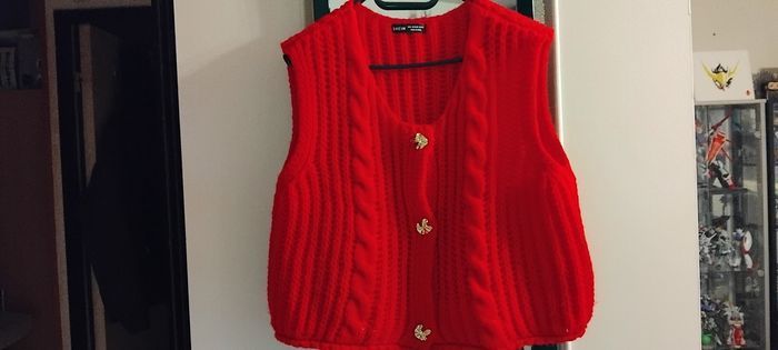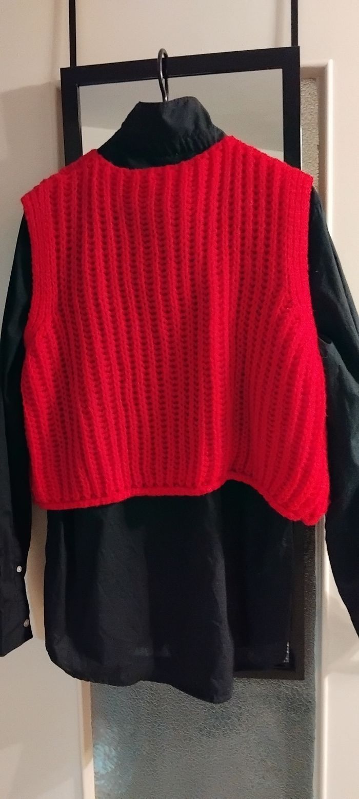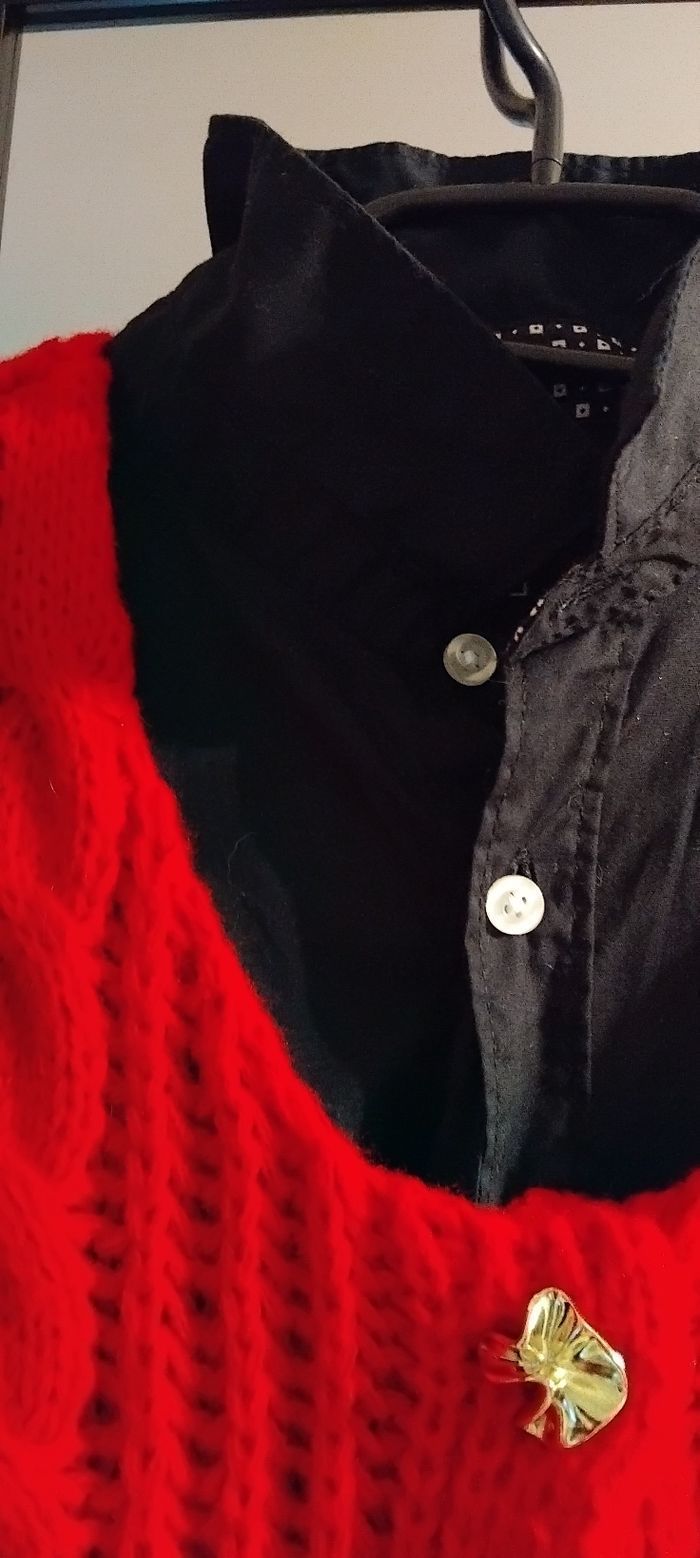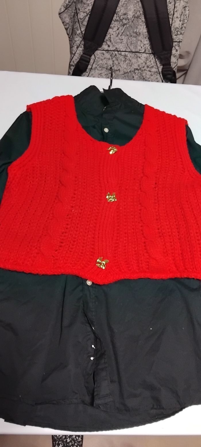 Ensemble Rouge et Noir Excellent état Mis un après-midi laver bien sur Taille L Chemise Noire taille L Gilet sans manche Rouge taille L grosse maille très tendance L'ensemble est Canon Convient jusqu'à 44 OU ******* 12€ GILET ROUGE ******* 8€ CHEMISE NOIRE