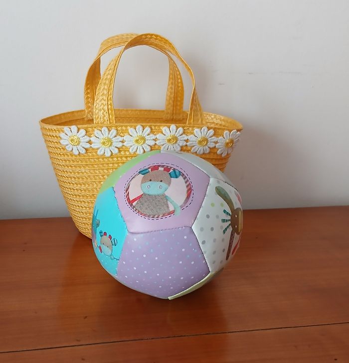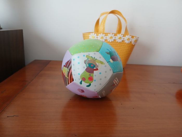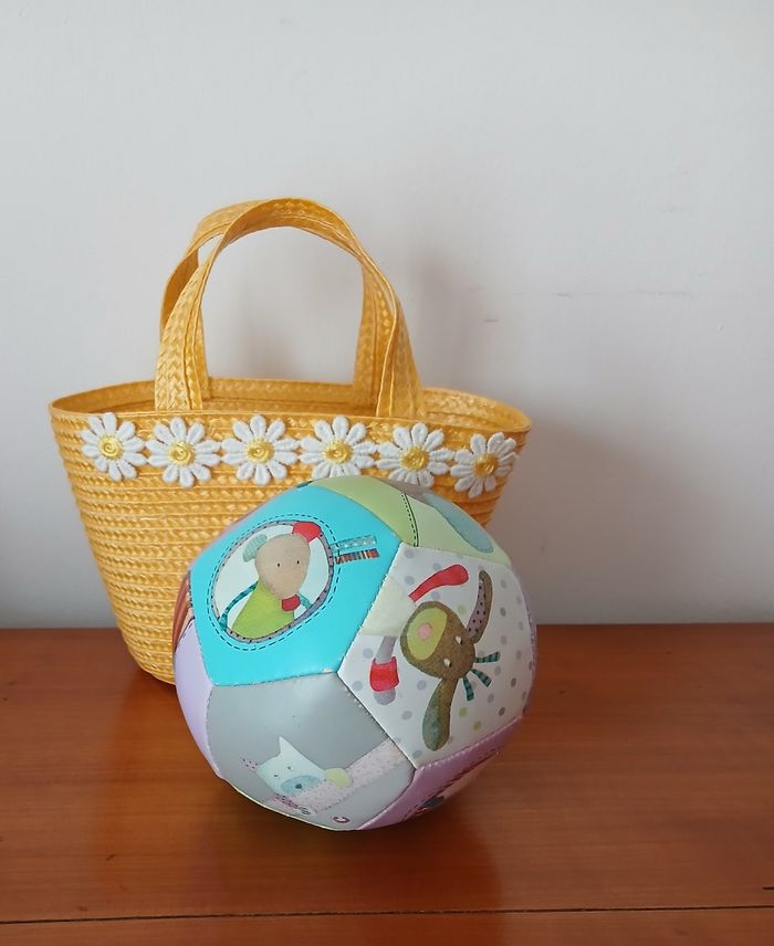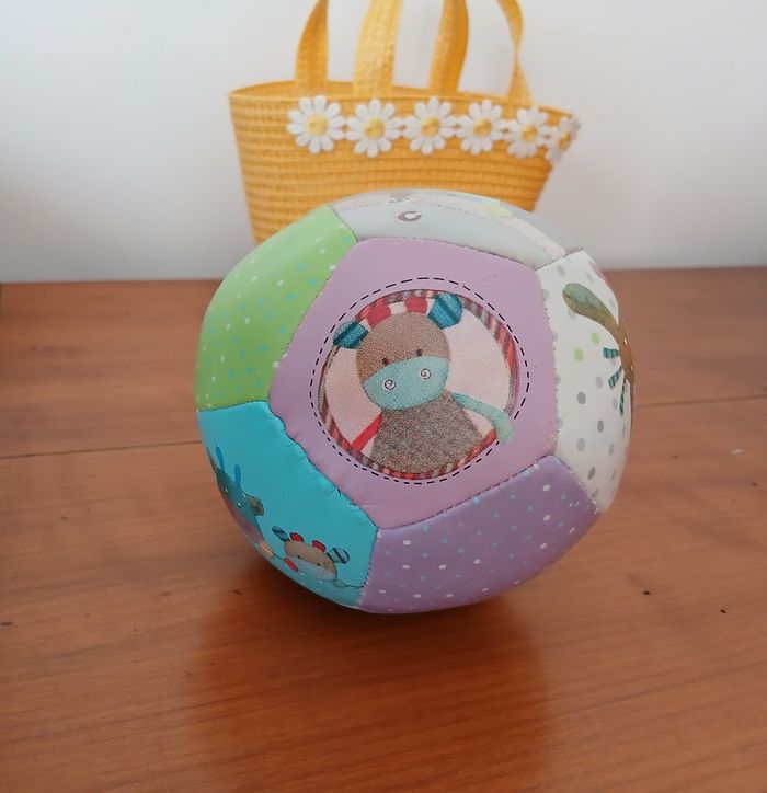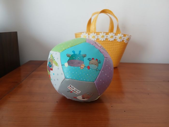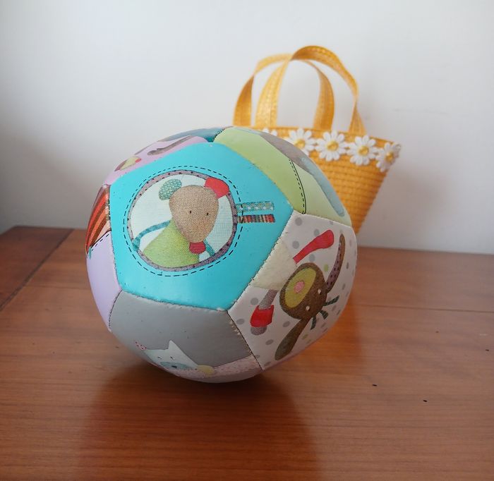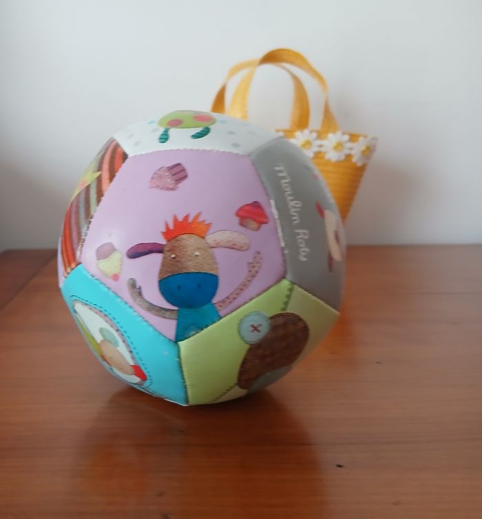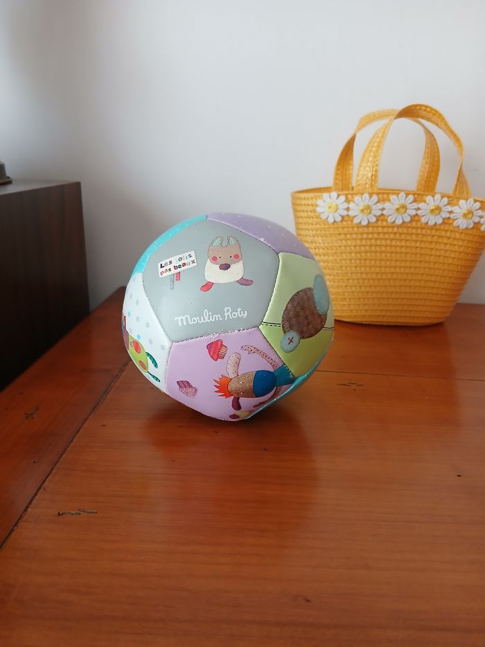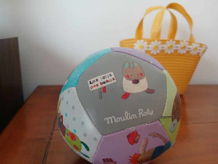 Balle souple marque Moulin Roty; collection " Les jolis pas beaux" . Noté en bon état car Quelques légères traces d'usure // voir photos pour détails