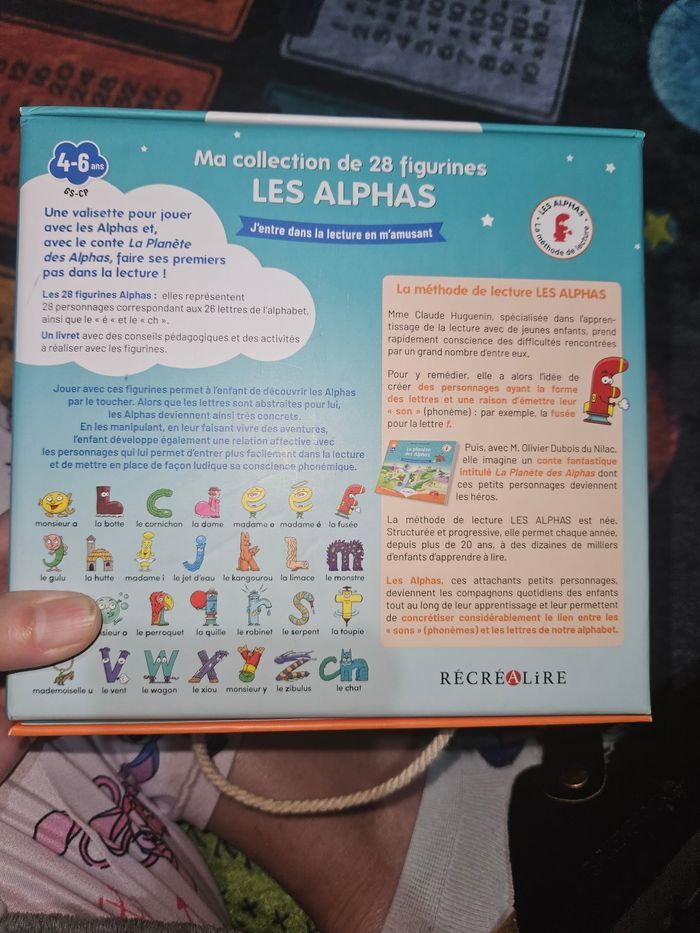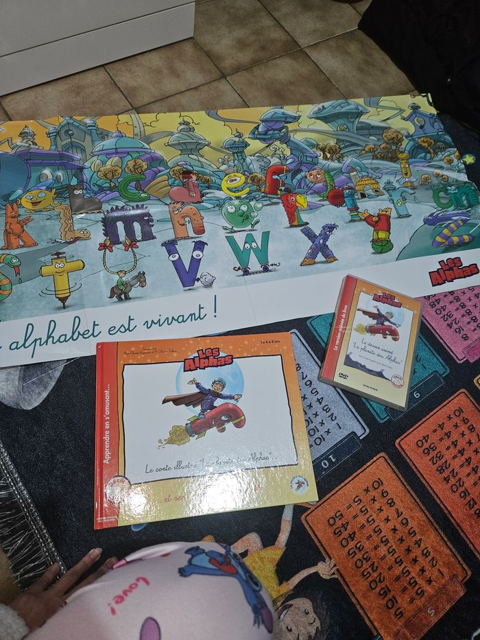 Complet les 26 lettres et le ch et é avec poster un peu écrit voir photo livre un peu abîmé à la fin voir photo aussi et les dvd je ne sais pas s'il fonctionnent tjr je n'ai plus de dvd