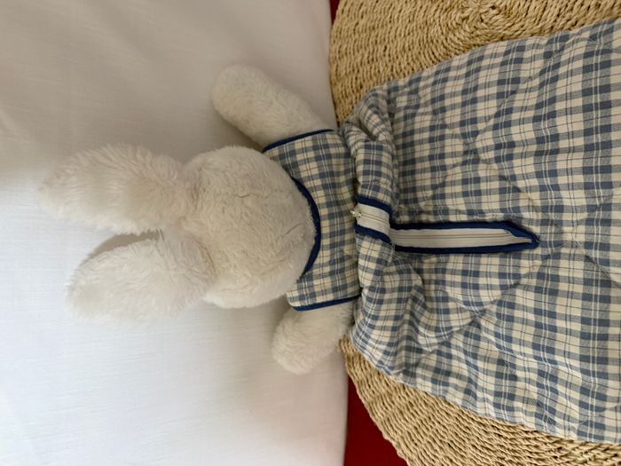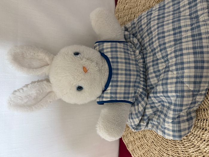Vintage - Ancienne peluche Range-Pyjama lapin blanc bleu Douillette  - photo numéro 1