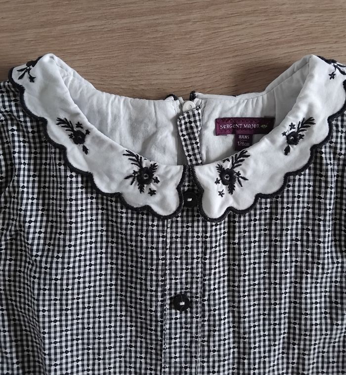 Sergent Major robe fille 8 ans – robe vichy noir et blanc col brodé manches longues - photo numéro 1