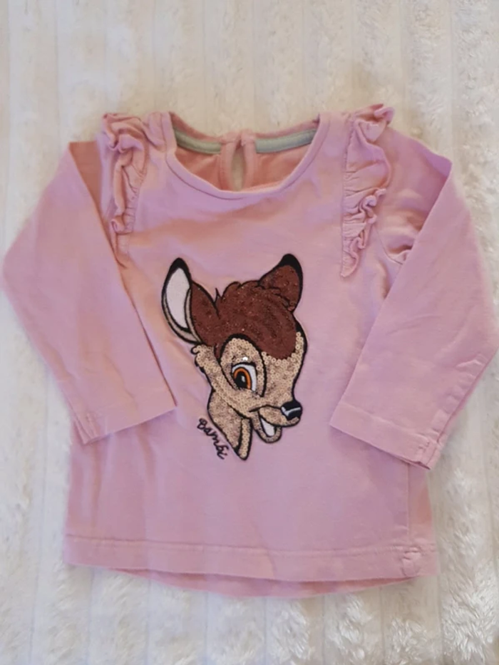 Tee-shirt manches longues fille 6/9 mois 74 cm Bambi en sequins