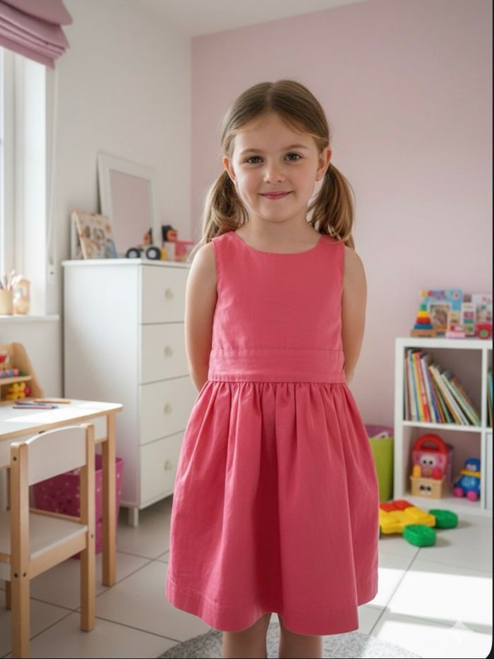 🎨 Couleur : rose 🔖 Marque : vertbaudet 📐Taille : 6 ans ✅Flot à nouer au dos + bouton ✅1 bouton de secours