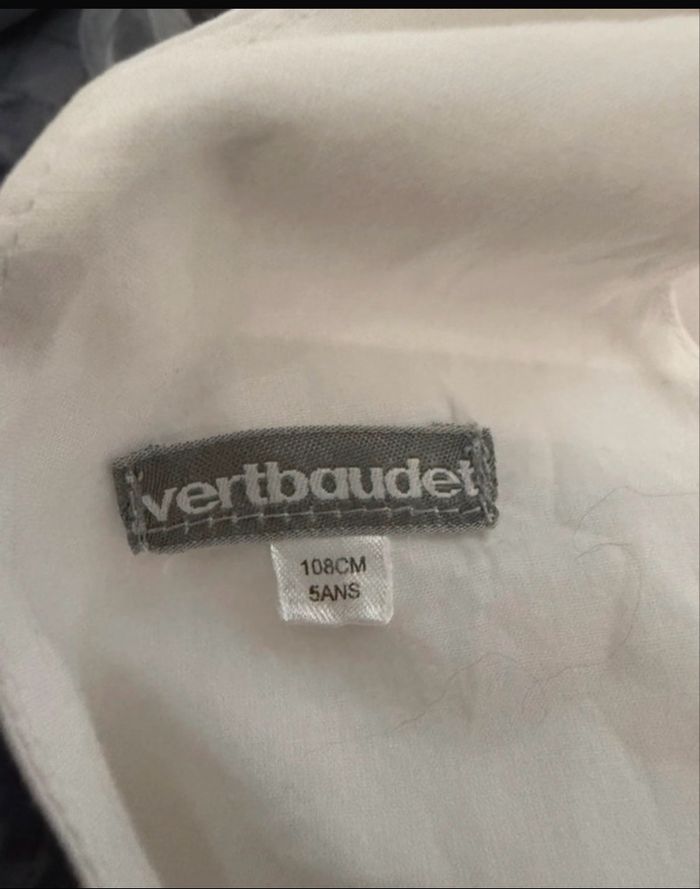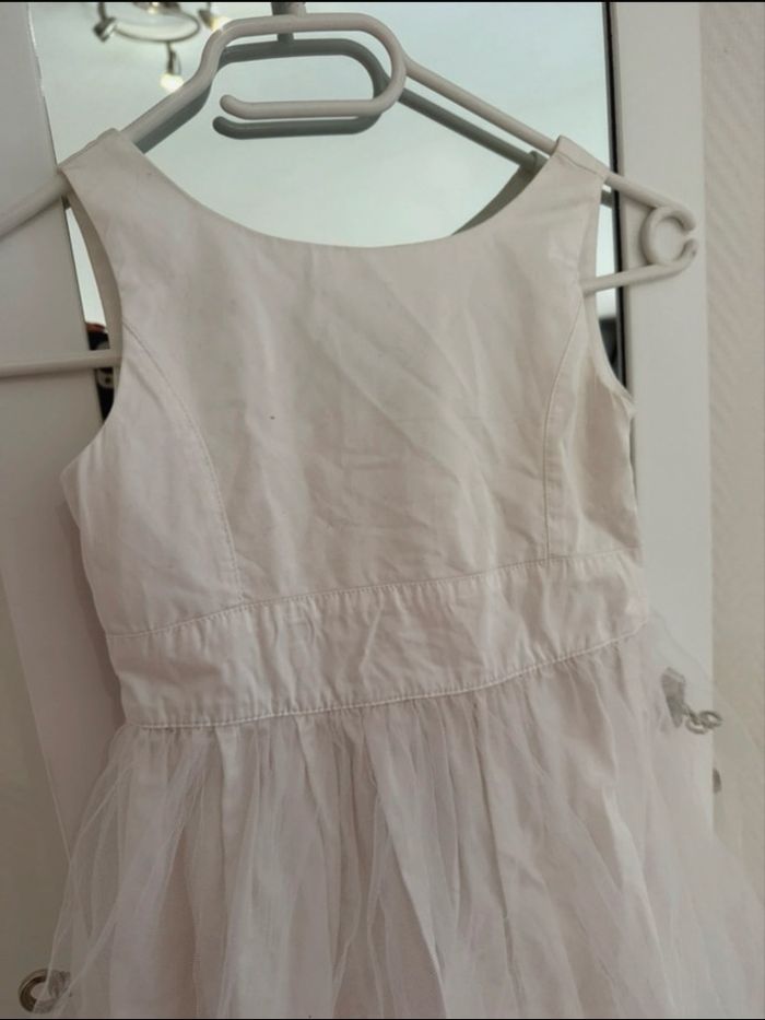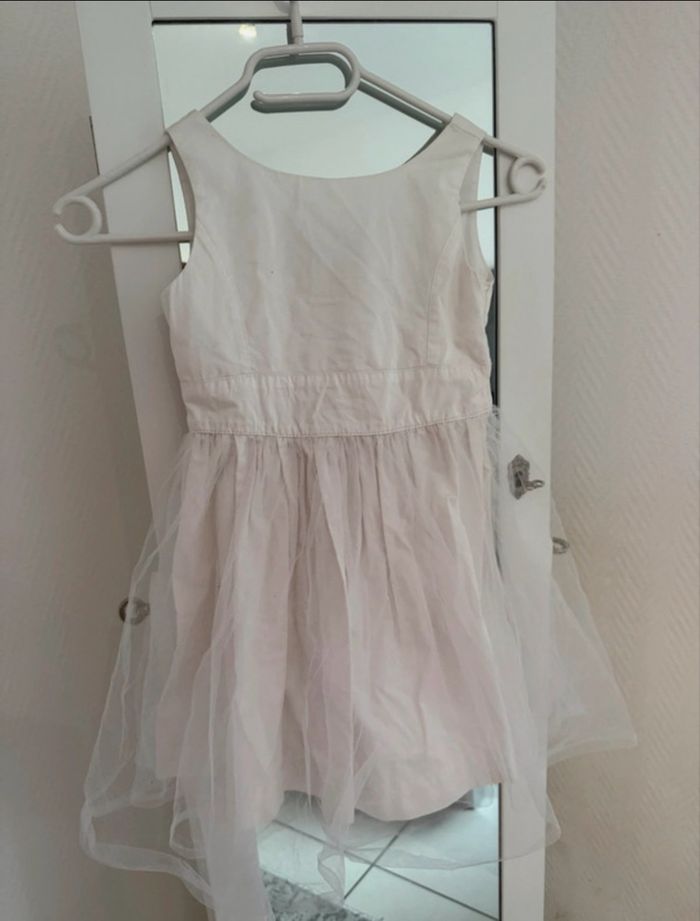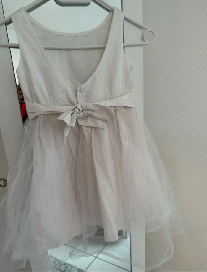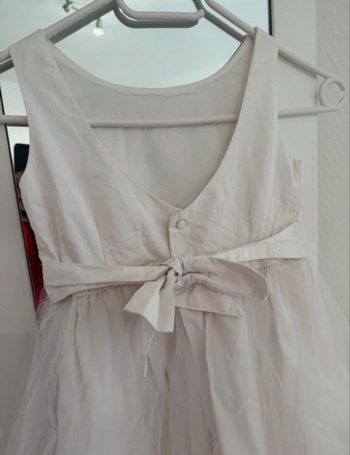 🎨Couleur : blanche ( un peu terni) 🔖Marque : vertbaudet 📐Taille : 5 ans ✅Flot à nouer au dos + jupe effet tulle
