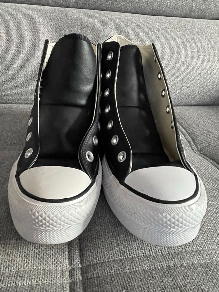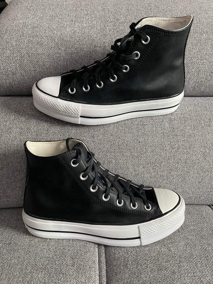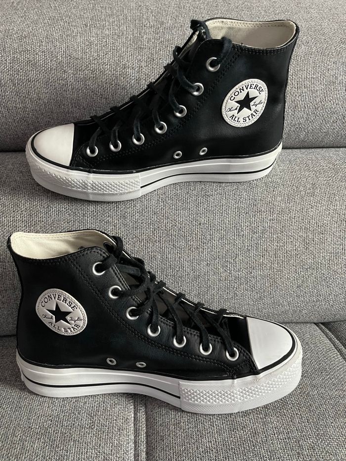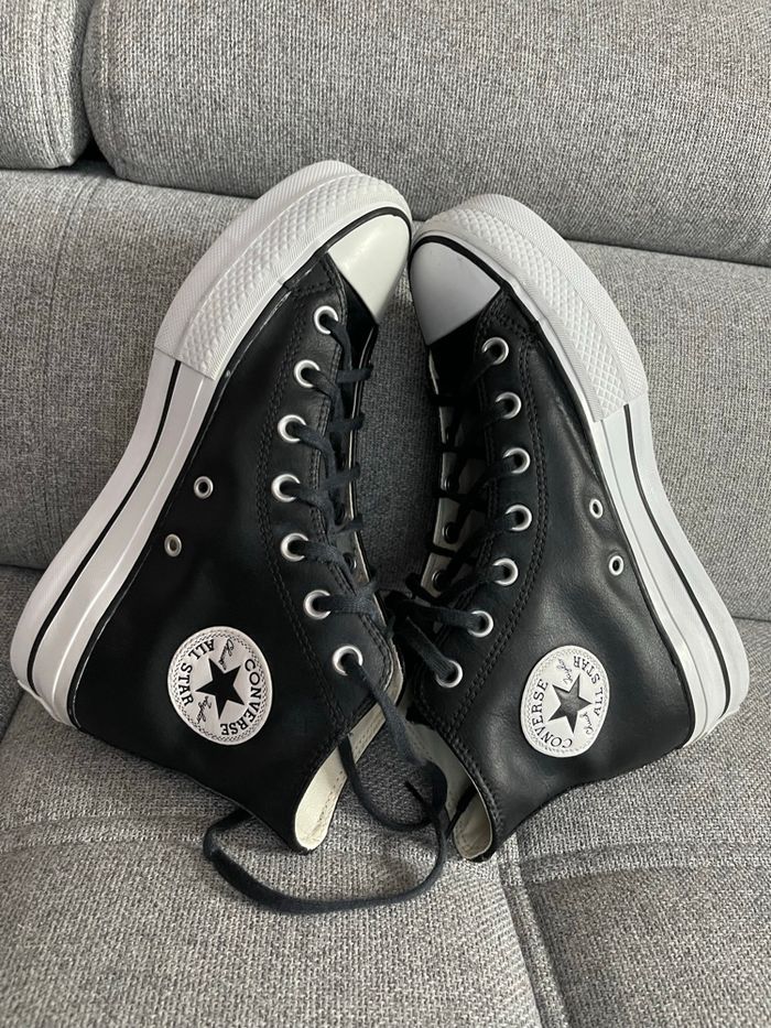 Converse plate-forme noire 39 en cuir véritable / très bon. État  - photo numéro 1