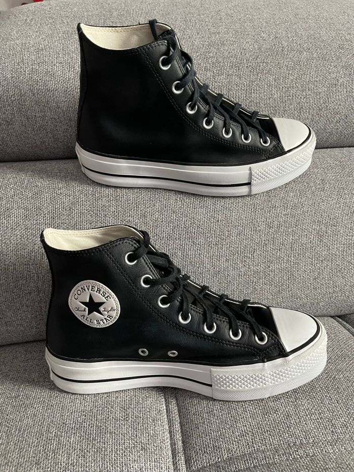 Converse noire plate-forme en cuir véritable Un model classique et confortable , Taille correctement 39 Portée mais toujours en très bon état général Envoi rapide