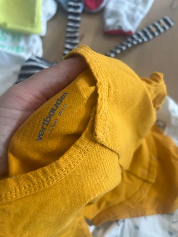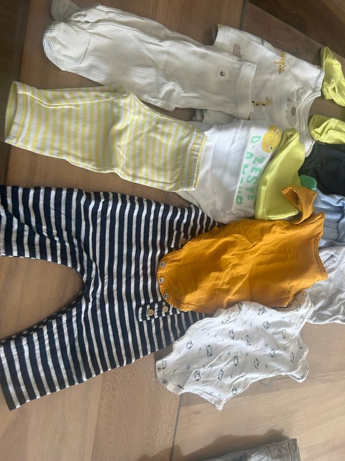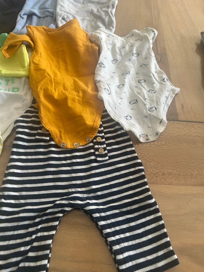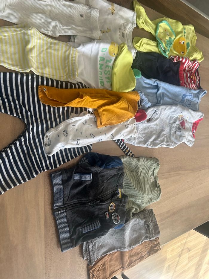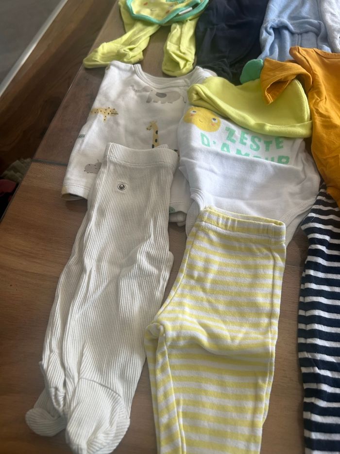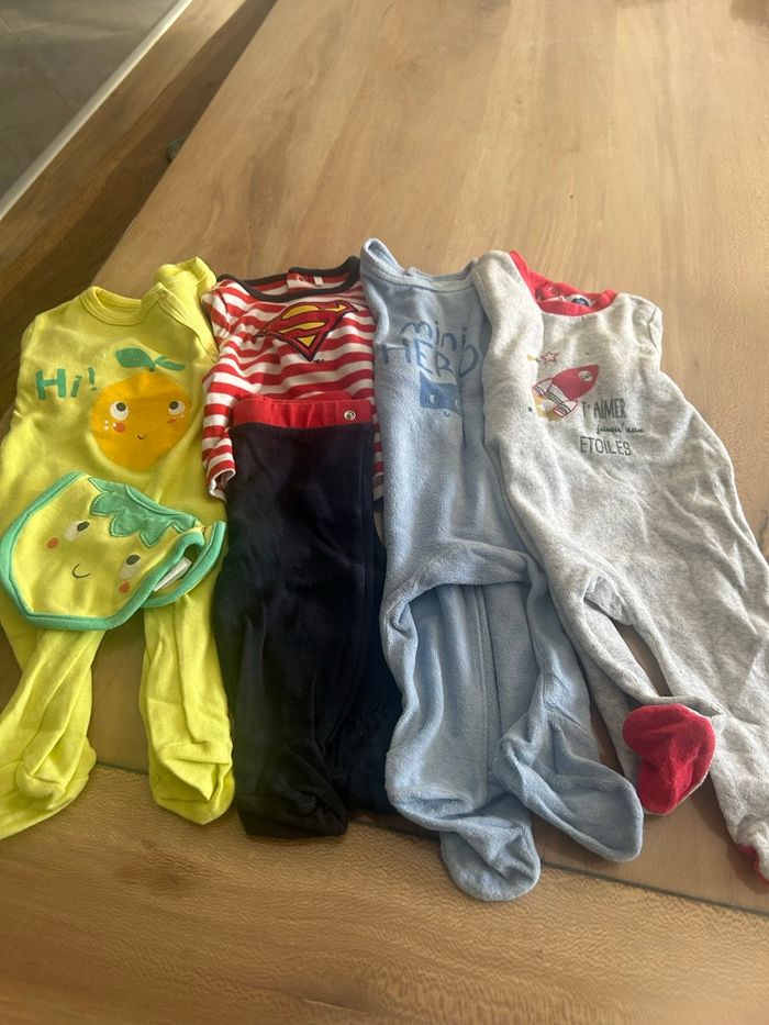 4 pyjamas dont 1 en 2 pièces 3 tenues dont 3 bodies 1 veste 1 pull et 2 pantalons 15 pièces au total En 3 mois plusieurs marques