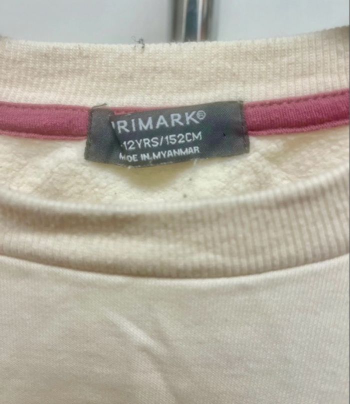 Sweat avec élastique au niveau de la taille Il a des petites taches au dos (feutres je pense) mais ça passe sinon TBE Marque Primark 11-12 ans