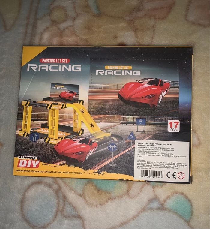 Parking de voitures pour enfant avec circuit de course à assembler soi-même. Le set comprend 17 pièces et permet de créer un parking à plusieurs niveaux avec rampe pour faire descendre les voitures Jeu de construction ludique Stimule l'imagination et la motricité Adapté aux enfants à partir de 3 ans Facile à monter (DIY) Neuf