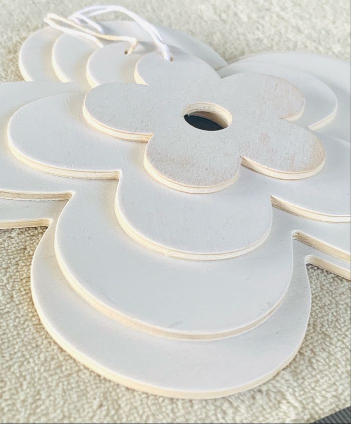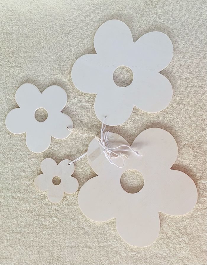 Kit 4 fleurs à suspendre, en bois Epaisseurs : 0.2mm Diamètres environ : 6.5, 10, 14.5 et 16.5cm Avec petites cordes blanches Neuf, sans utilisation  ⛔️ Prix FIXES, NON négociables 🚨  👏🏻 Réductions sur les lots 👍🏻 #fleur #bois #asuspendre #loisirscreatifs #scrapbooking