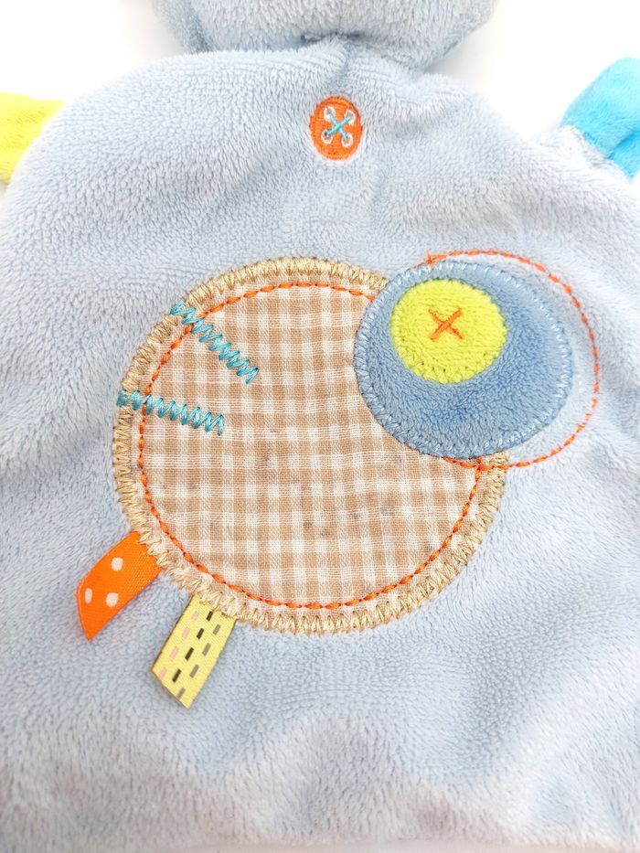 Doudou plat chat bleu Nicotoy vert orange rond carreaux croix lire descriptif svp - photo numéro 3