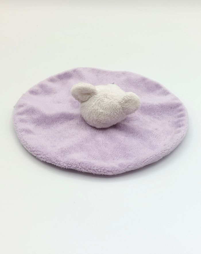 Doudou plat rond souris blanc mauve Grain de blé violet parme Bon état, lavé - étiquette abîmée par le lavage Envoi rapide 👋 Vendeur professionnel – articles soigneusement sélectionnés, nettoyés et vérifiés avant expédition. A12780 #doudou #souris #peluche #bébé #graindeble