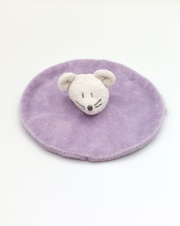 Doudou plat rond souris blanc mauve Grain de blé violet parme - photo numéro 1